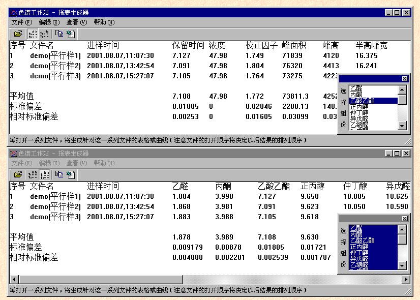 利用软件附带的报表生成器可生成多种形式的结果统计报表,其中含有多次平行样结果的平均值和标准偏差。